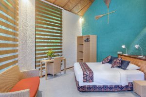 El resort dispone de habitaciones confortables con vistas a la jungla o al mar, restaurante con cocina internacional y un ambiente relajado que combina bienestar, confort y naturaleza, ideal tanto para buceadores como para quienes buscan descansar junto al agua.